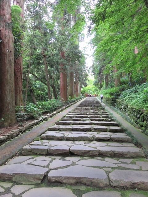 緑豊かな中を貫く石段を登って行きます。