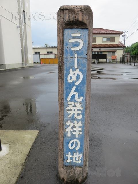 さらに歩いてほどなくした消防署の片隅に、「うーめん発祥の地」の碑が建っています。