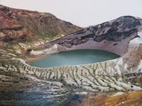 今日は真っ白で何も見えませんが、依然に見た時の美しい「御釜」の写真を掲載しておきます。
