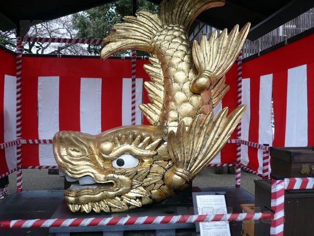 正門を入ると、金のしゃちほこが祀られています。