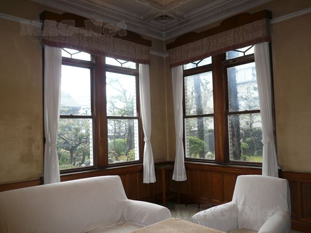 和館と間続きの白いタイル貼りの洋館には、客をもてなすための応接間が造られています。
