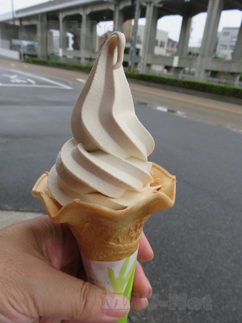 どことなく色づいたソフトクリームはチャラメルの風味がし、かつて銚子で食べた醤油を用いたソフトとどことなく似ています。