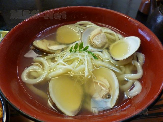 「その手は桑名の焼き蛤」の句で有名なハマグリを、温かいうどんで食べてみることにします。
