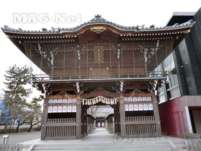 その先には、松平定永によって寄進された三間一戸・重層入母屋造りの楼門があり、正面左右の左大臣・右大臣と、裏側には金剛力士像が安置されています。