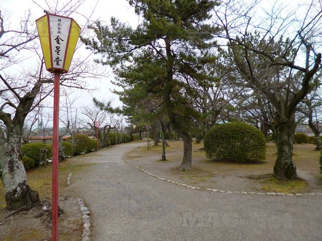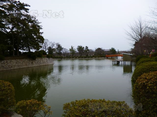 桑名城跡は「九華公園」として整備され、お堀には朱色の橋が架かっています。