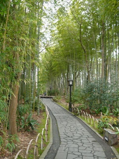 朱色の橋を渡ると、そこにあるのは「竹林の小径」と呼ばれる竹林です。