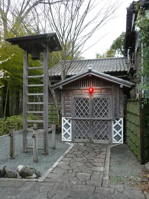 木製、瓦屋根の建物と鐘、そして柱の上の鐘に、消防の赤い灯が映っており、風情をかもしだしていました。