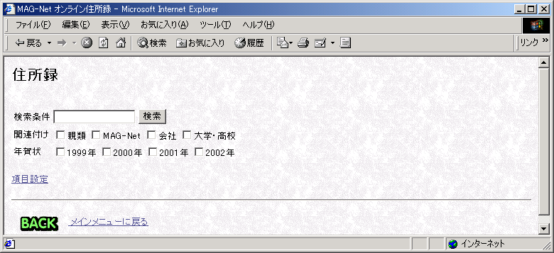 住所録を表示する検索条件を設定します。